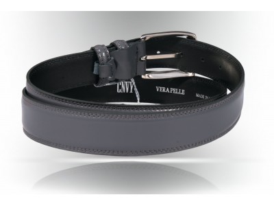 S116 / 35 - Genuine leather belt, with matching leather lining, enriched by a double stitching with thin thread, leather loop stop, shiny nickel colored metal buckle. Height 3.5 cm.